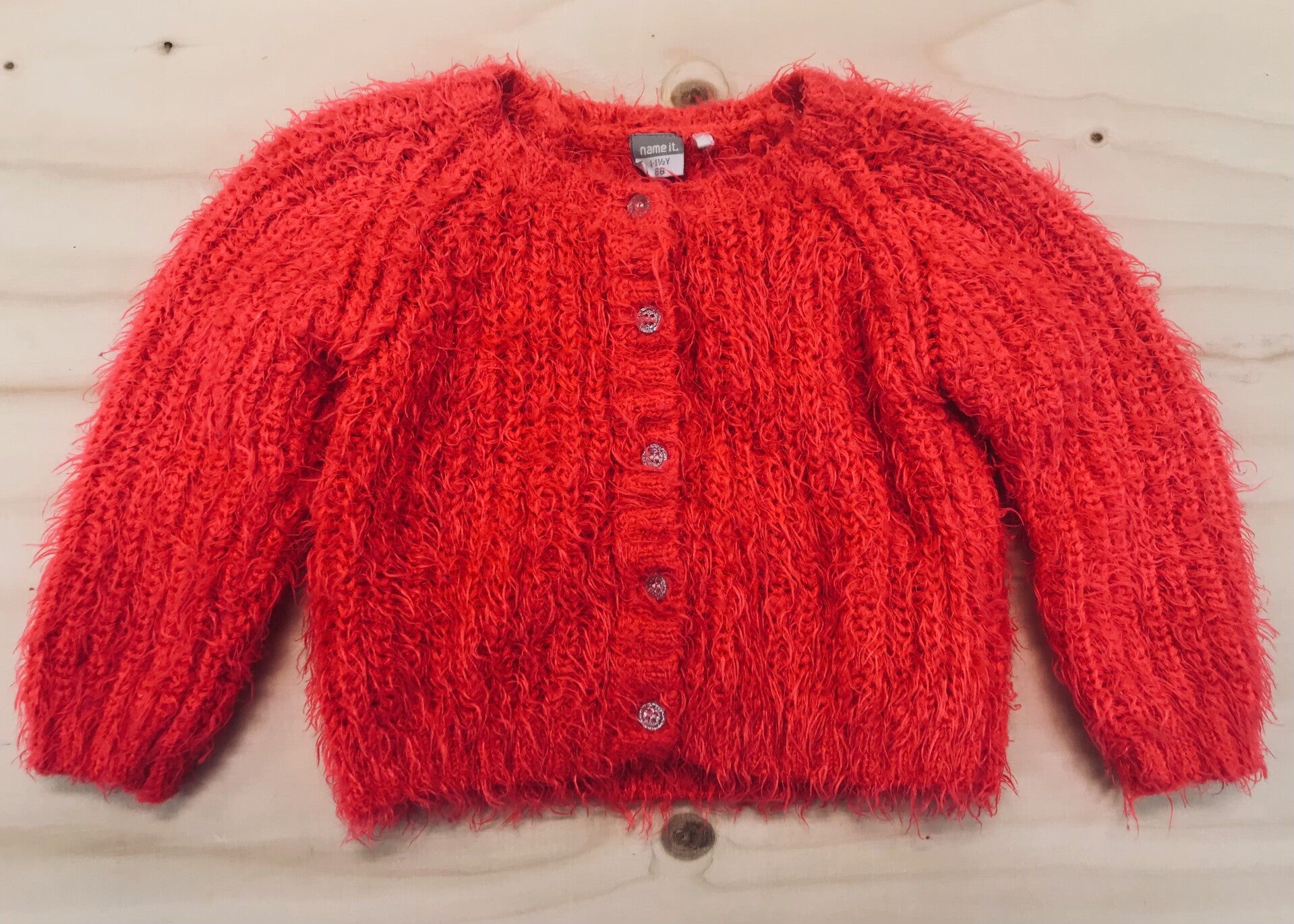 Pluizig koraalrood vestje van Name It